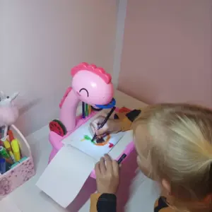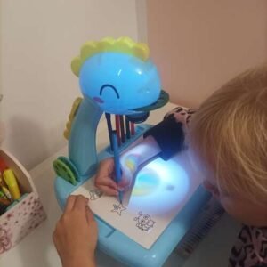 Projektorid koos tarvikutega oleksid kindlasti suurepärane kingitus igale lapsele, kellele meeldib joonistada. Sellel on jalgadega laud, seega saab selle asetada lauale või muule pinnale. Projektoriga on kaasas korduvkasutatavad kaardid, millele saab kaasasolevate markeritega joonistada ja puhtaks pühkida. Projektor või tarvikud oleks kindlasti suurepärane kingitus igale joonistamist armastavale lapsele. Sellel on ka jalad, nii et selle saab asetada lauale või muule pinnale. Projektor on varustatud korduvkasutatavate kaartidega, mille saate märkida kaasasolevate markeritega ja pühkida lapiga.